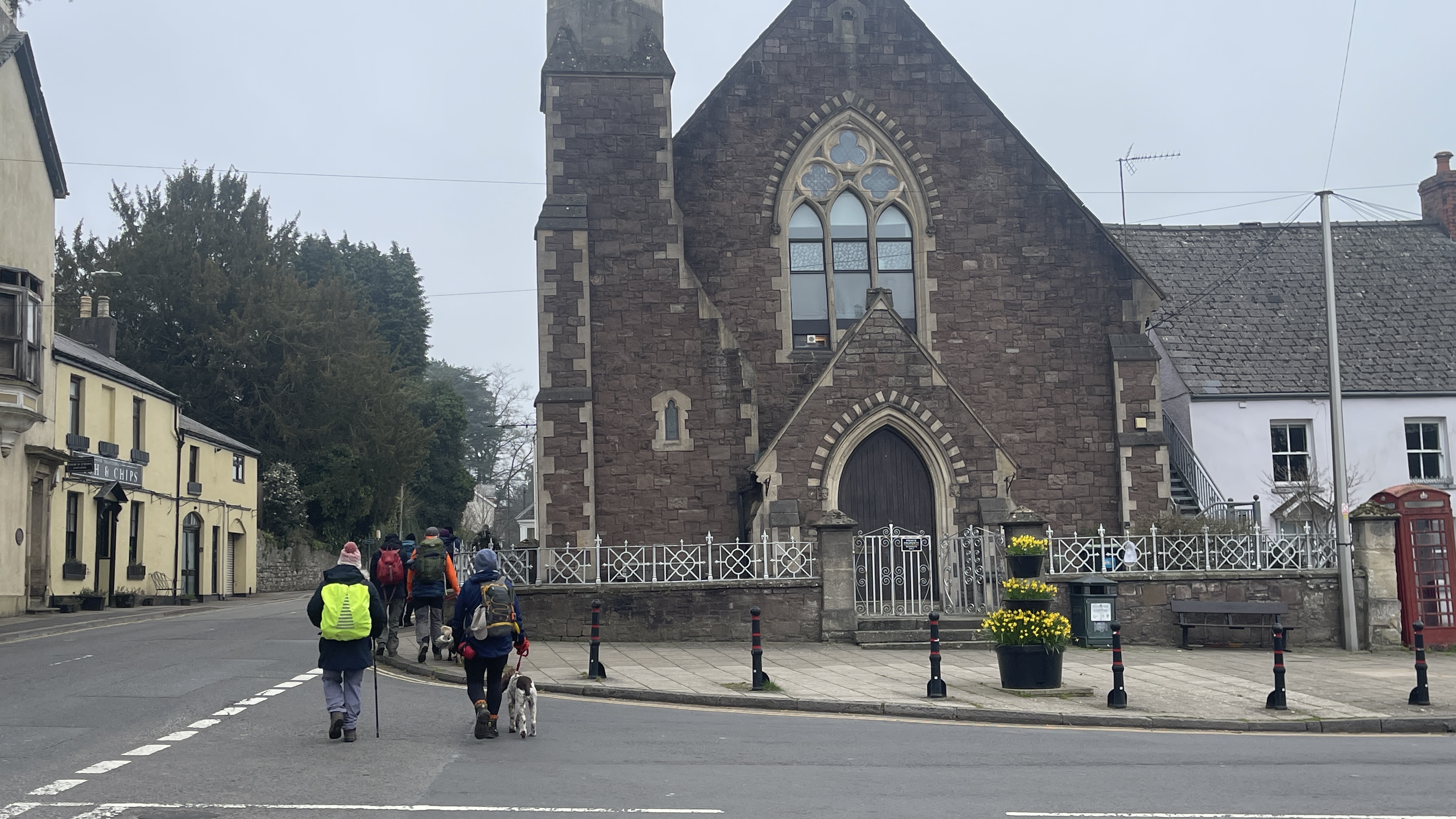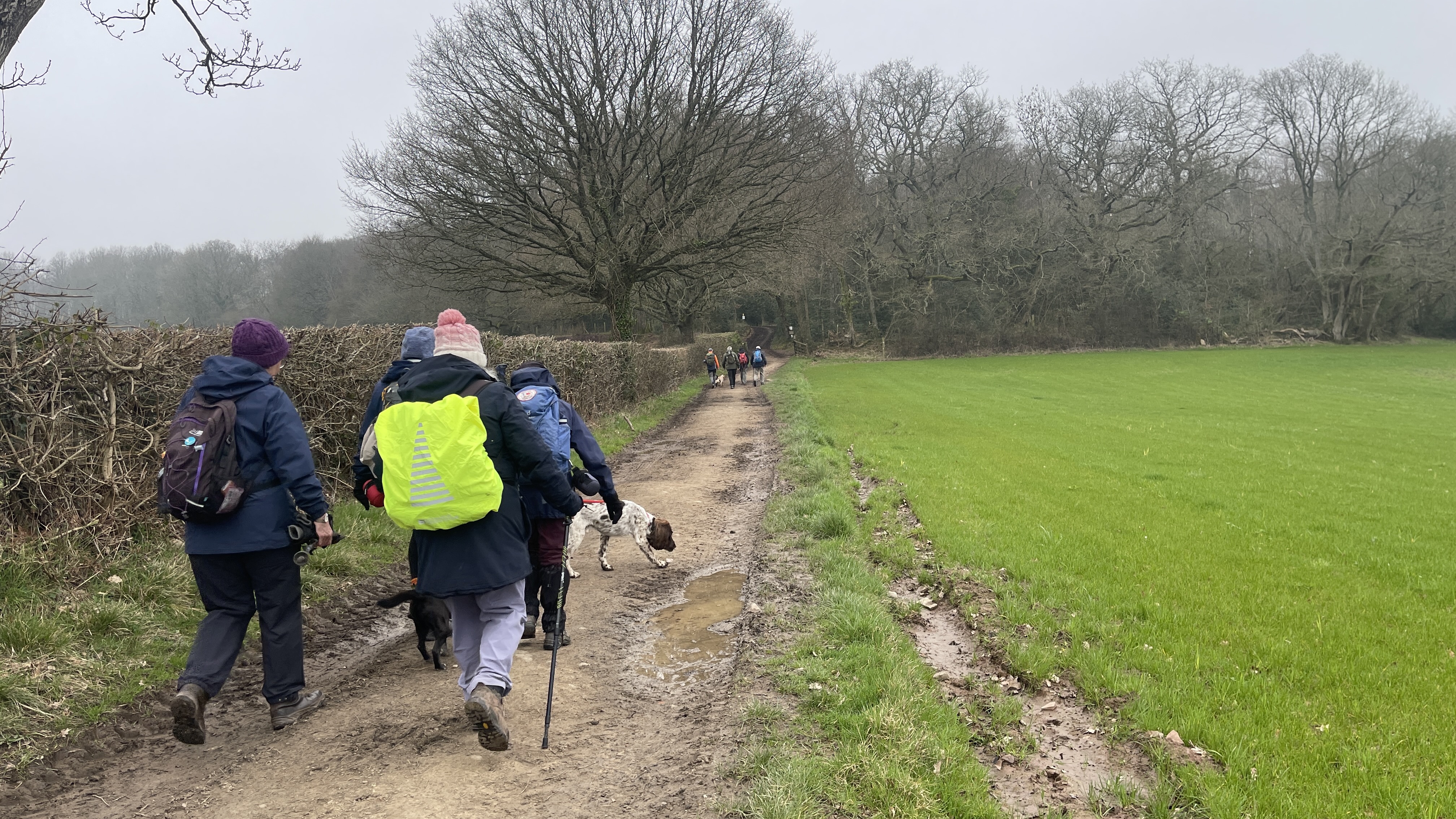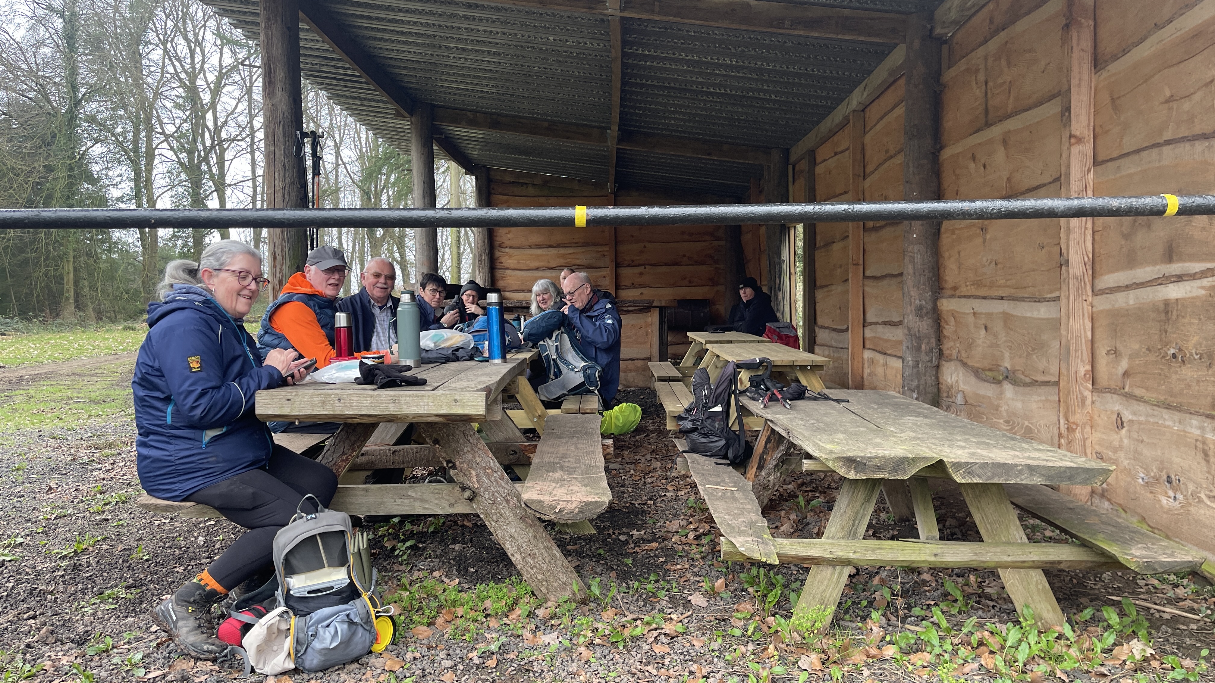 Yesterday, 11 of us enjoyed a lovely day out on Derek’s “Usk Figure of Eight Walk”. Starting from the attractive town of Usk, we set off from a place with a fascinating past. Usk has roots going all the way back to Roman times, later becoming an important Norman market town, and it still has that wonderful blend of history, charm and countryside that makes it such a great place to begin a walk. We began by heading northwards, soon stopping to admire the impressive gates of Usk Castle. The castle dates back to the Norman period, with the first castle at Usk likely built in the 1070s, and much of the later stone stronghold developed over the following centuries. It was also the setting for one of the darker tales in local history, as prisoners captured after the nearby Battle of Pwll Melyn in 1405 were reportedly executed near the castle. Continuing on, we passed the area associated with the Battle of Pwll Melyn, fought on 5 May 1405 during Owain Glyndŵr’s revolt. The battle took place just north of Usk Castle and ended in a significant defeat for the Welsh forces led by Glyndŵr’s son, Gruffydd. It was a key moment in the uprising and one that still casts a long historical shadow over the landscape around Usk today. From there we made our way through Lady Hill Wood and Park Wood, where Derek had found us an absolutely first-class tea break stop — a pheasant shooters’ shelter complete with plenty of picnic benches. It was a perfect place to pause, chat and refuel. We then headed east, following the Cayo Brook, passing Cwmcayo Farm, before reaching the banks of the River Usk itself. Lunch was enjoyed there with yet more benches on hand, always appreciated, and with a lovely backdrop of the river and Usk Bridge to complete the scene. The weather stayed grey and misty throughout, which meant that the fantastic views from the higher ground were hidden from us this time. Even so, the rain held off all day, and that felt like a real bonus. After lunch we set off on the second loop of the figure of eight, heading south-west as we skirted around and then through Pan-y-cwcw Wood, before turning north again and making our way back into Usk and to the waiting cars. All in all, it was a great day in good company, with a mix of woodland, riverbank walking, local history and plenty of chat along the way. A big thank you to Derek for leading the walk, and to everyone who came along. We hope this gives those who could not make it a flavour of the day and perhaps encourages a few new faces to come and join us on a future walk too. Keep an eye out for details of next Saturday’s walk, which will be published soon.